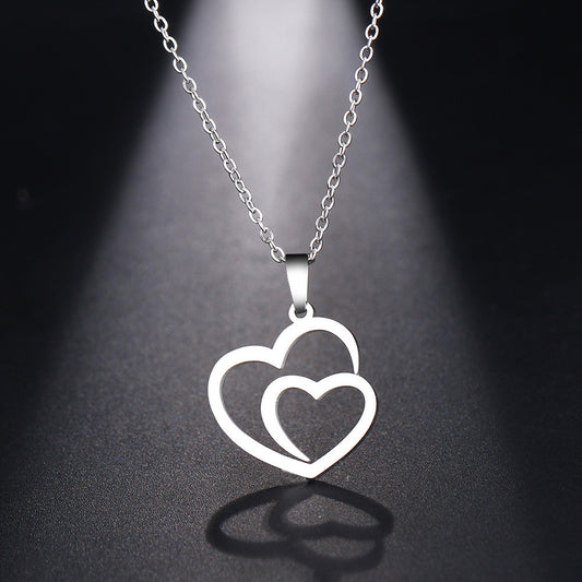 Double peach heart necklace couple necklace