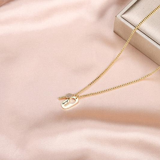 Lucky Key & Keyhole Necklace – Gold Chain with Rhinestone Details