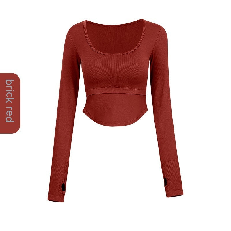 Thread Fitted Yoga Clothes Long Sleeve Women's One-piece With Chest Pad Skinny Slimming Fitness Sports Top